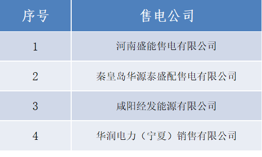 正在公示的4家售電公司名單如下: