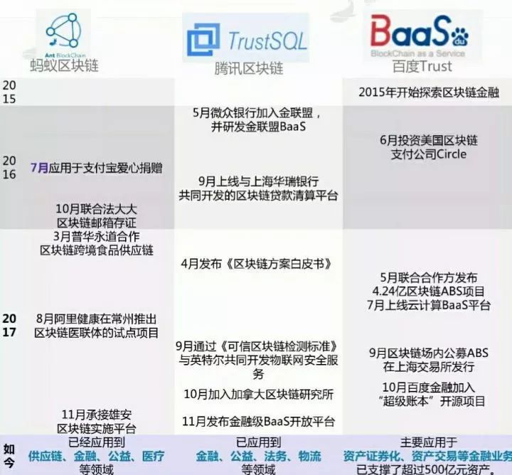 既然要談區(qū)塊鏈的國(guó)內(nèi)應(yīng)用開(kāi)發(fā),自然得先從BAT三巨頭談起
