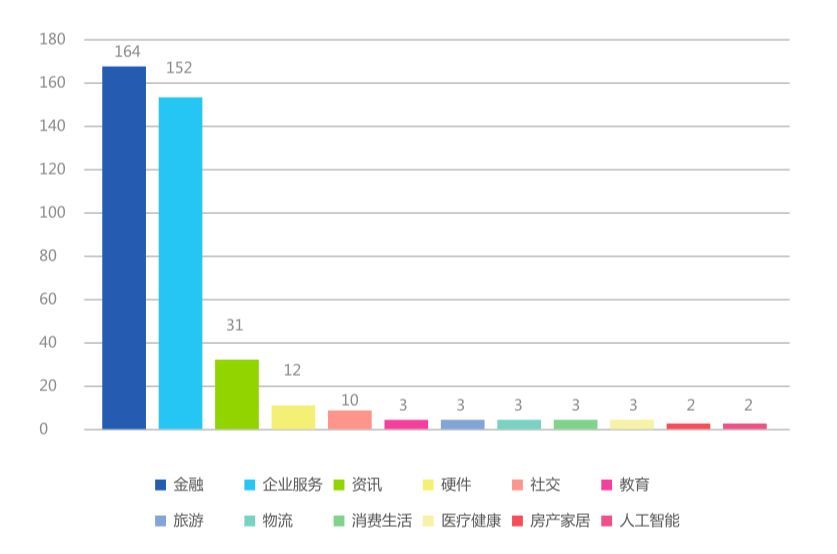 據(jù)七麥數(shù)據(jù)報告顯示,在我國全部區(qū)塊鏈創(chuàng)業(yè)項目中,金融類占比最高,達到 42.72%,企業(yè)服務類占比達 39.18%,這兩類項目共計占比高達 81.44%。