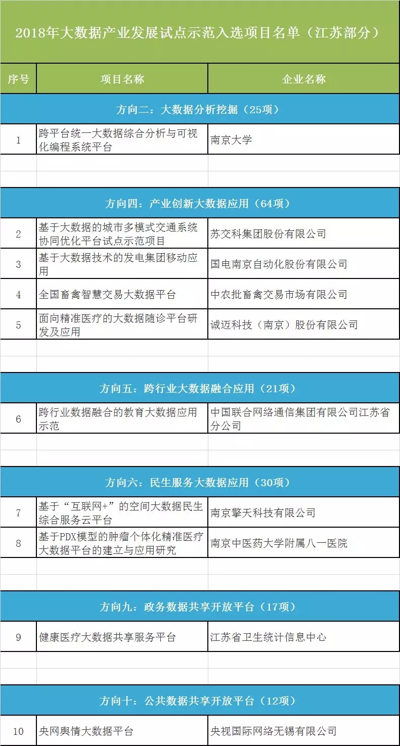 工信部11月公布的2018年大數(shù)據(jù)產(chǎn)業(yè)發(fā)展試點示范項目中,江蘇10個項目入選。