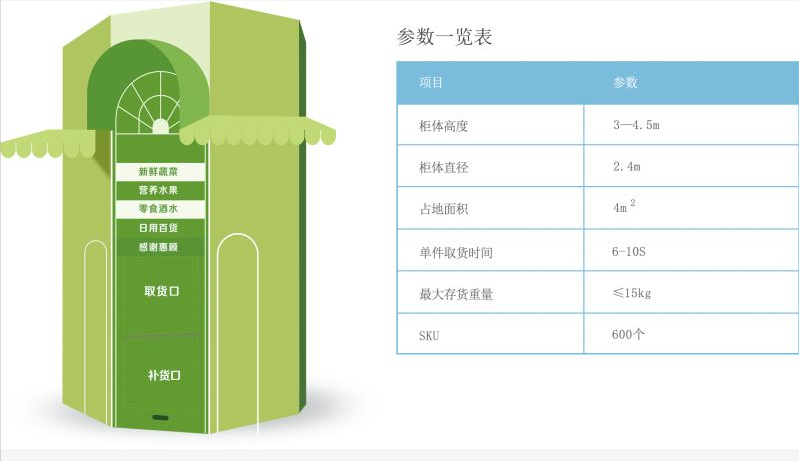 ▲大容量無人零售智能柜以及參數(shù)一覽表