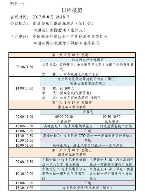 2017“海上風電領袖峰會”將于8月16-18日在江蘇南通舉行(附日程)