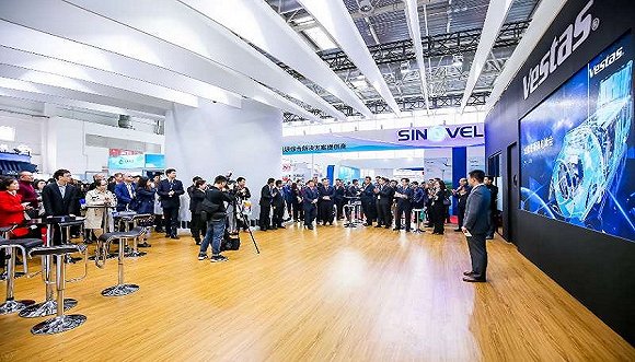 與以往不同,海上風電新機型占據(jù)了此次展臺的重要位置,多家風機制造商都在力推海上風電新機型。