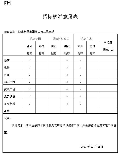五、請嚴格按照本項目核準意見實施招標。招標范圍、招標組織形式、招標方式等要求見《招標核準意見表》(附后)。
