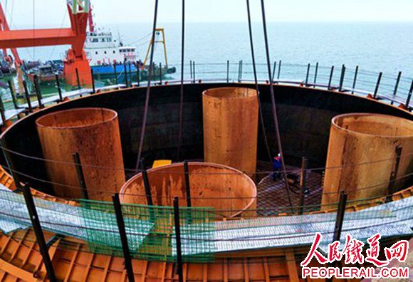 首個鋼套箱總重量達到220噸,高度達到8米(包含牛腿高度),鋼套箱平面面積達到360平方米,鋼套箱側(cè)板與底板面積達到670平方米。