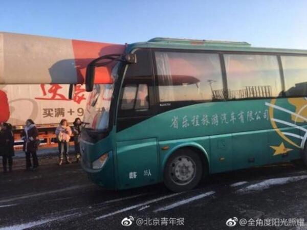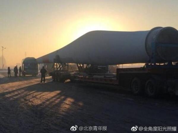 史先生給北青報(bào)記者提供的照片顯示,扇葉被平放裝在一輛運(yùn)輸車上,扇葉尾端從大客車司機(jī)座位上方穿進(jìn)大客車內(nèi)。照片中顯示,路面上有一些雪,史先生表示,當(dāng)?shù)刈蛱煸?jīng)下過雪。他告訴北青報(bào)記者,據(jù)他所見,現(xiàn)場(chǎng)沒有人有明顯的外傷。
