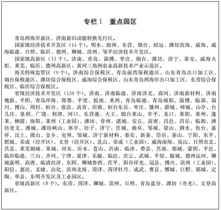 以淄博等14市國(guó)家和省級(jí)經(jīng)濟(jì)技術(shù)開發(fā)區(qū)、高新技術(shù)產(chǎn)業(yè)開發(fā)區(qū)以及海關(guān)特殊監(jiān)管區(qū)等為重點(diǎn),創(chuàng)新園區(qū)管理運(yùn)營(yíng)機(jī)制,明確各市產(chǎn)業(yè)發(fā)展方向,培育特色經(jīng)濟(jì)和優(yōu)勢(shì)產(chǎn)業(yè),打造若干具有核心競(jìng)爭(zhēng)力的區(qū)域經(jīng)濟(jì)增長(zhǎng)點(diǎn)。