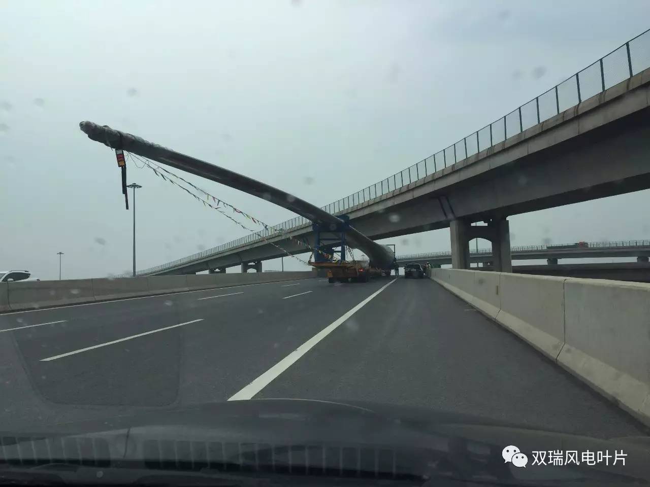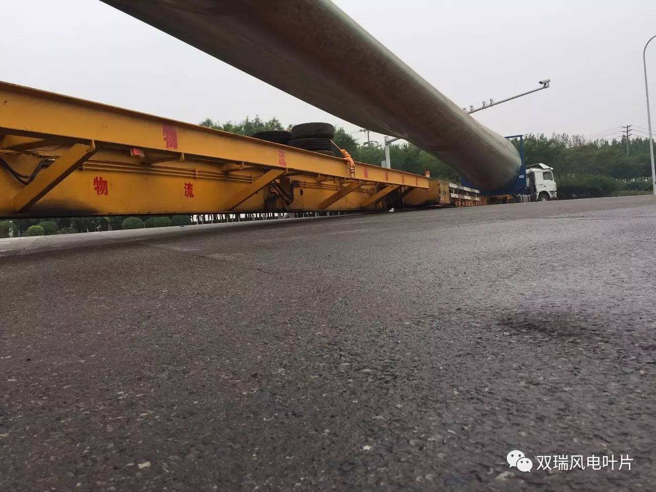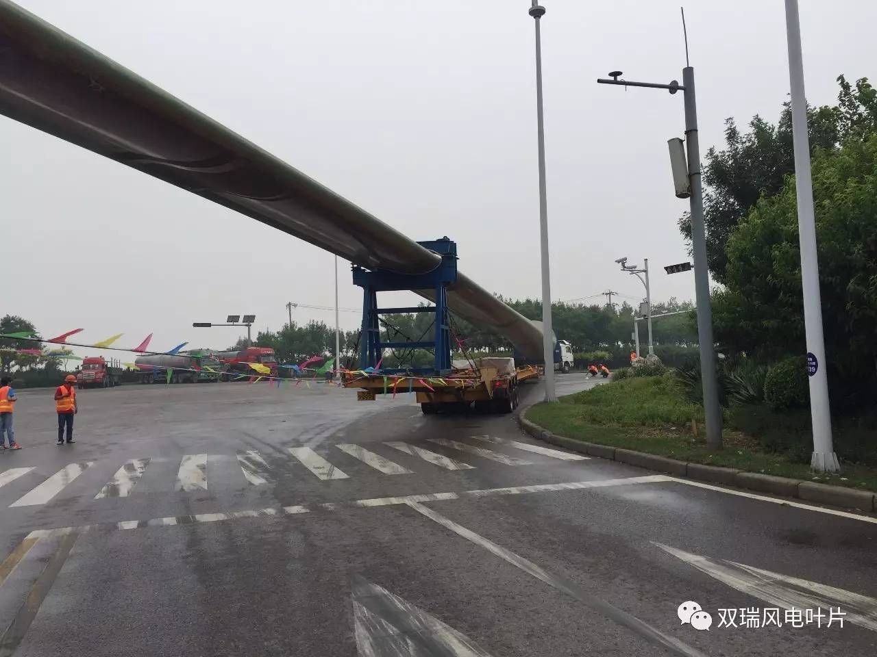 雙瑞風(fēng)電5MW首支葉片成功下線后,于6月13日出發(fā),歷經(jīng)11個日日夜夜和水路、陸路總計1700公里的行程,在6月24日凌晨到達風(fēng)能檢測中心。