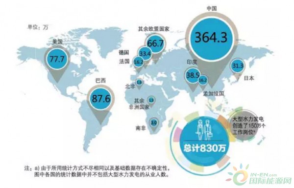 2016分國(guó)家可再生能源就業(yè)人數(shù)