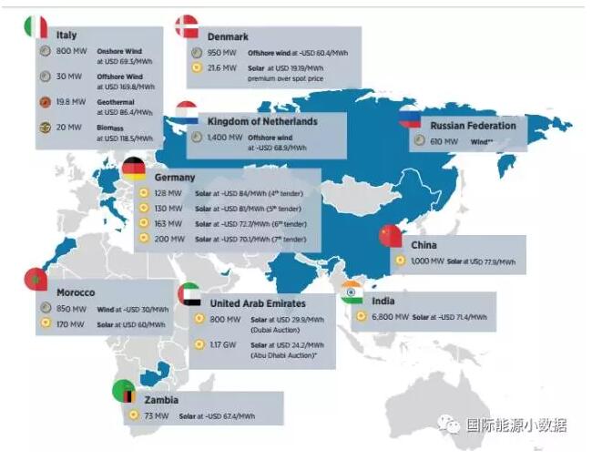【數(shù)據(jù)】2016年各國(guó)可再生能源最低價(jià)盤點(diǎn)