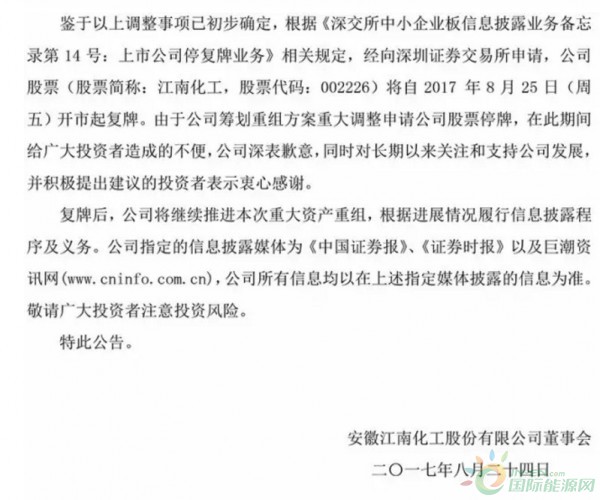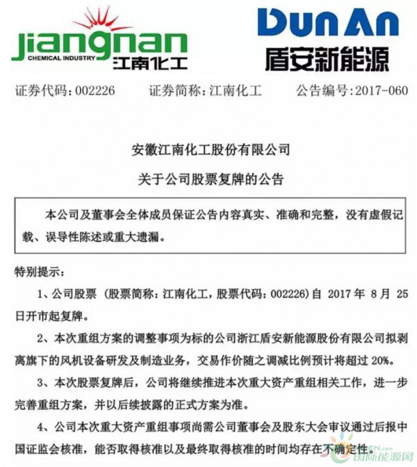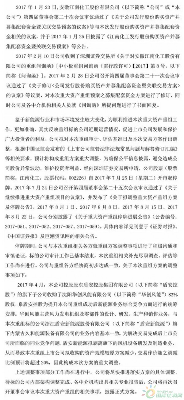 重組 | 江南化工擬將重組方案作出重大調(diào)整:因久和能源與華創(chuàng)風(fēng)能存在同業(yè)競(jìng)爭(zhēng)關(guān)系