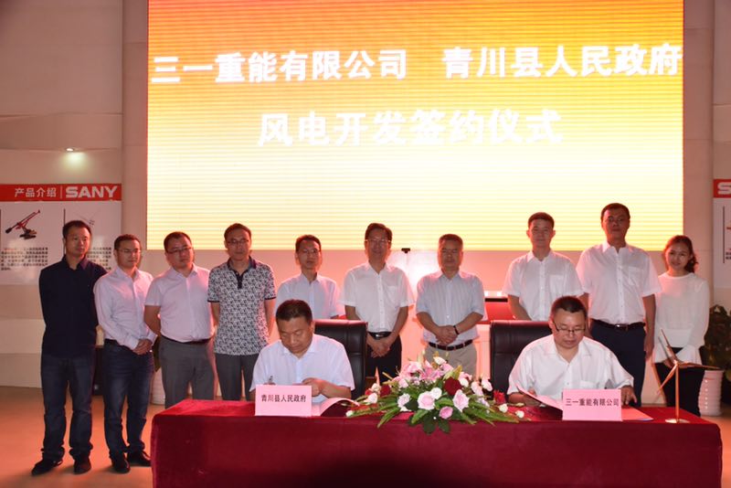 9月14日,在2017中國西部國際博覽會進出口商品展暨中國西部(四川)國際投資大會期間,三一重能有限公司與廣元市青川縣政府在成都市三一集團成都6S中心簽訂30萬千瓦風電開發(fā)合作框架協(xié)議。三一集團董事、三一重能副董事長毛中吾,青川縣委副書記、縣長劉自強,副縣長羅建中等領導出席簽約儀式。
