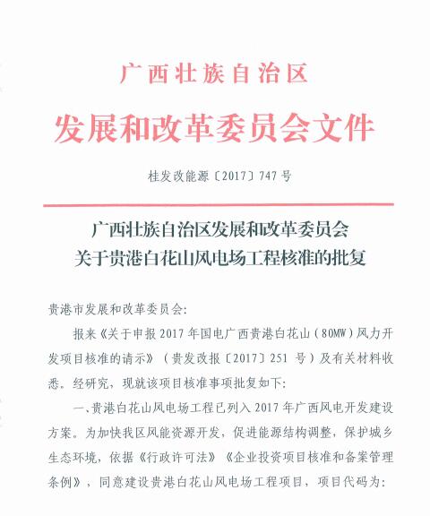 5、廣西發(fā)改委核準國電貴港百花山80MW風電項目(附文件)
