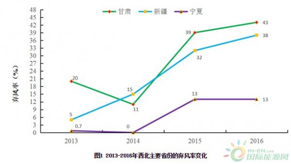 圖1 2013-2016年西北主要省份的棄風率變化
