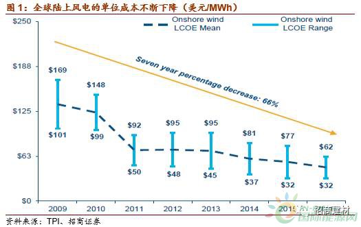 全球風電度電成本下降帶動風電裝機發(fā)展