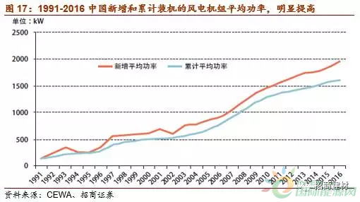 從1991-2006年國內(nèi)新增裝機的風電機組平均功率來看,非常明顯,從90年代的幾百千瓦持續(xù)提升到現(xiàn)在的2MW。