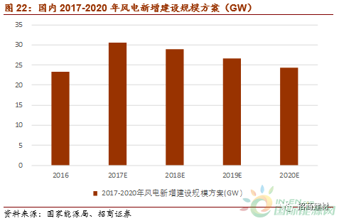 2017-2020年,保守預計風電新增裝機每年在20GW以上,維持高位。
