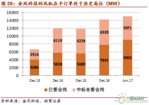 截至2017年6月,金風科技的風機在手訂單達到15,065MW,處于歷史高位,其中國內(nèi)陸上風電、國內(nèi)海上風電、國際陸上風電的占比分別為87.8%、5.5%、6.7%。金風科技加快拓展海上風電和國際市場,中材葉片作為供應商,也將受益。