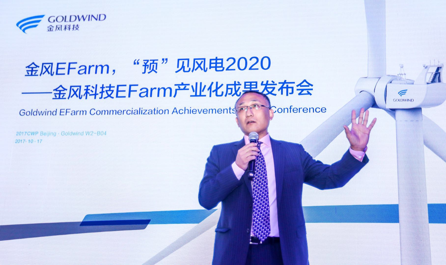 金風(fēng)科技EFarm產(chǎn)業(yè)化成果發(fā)布會上,EFarm總監(jiān)王斌正講解技術(shù)原理。