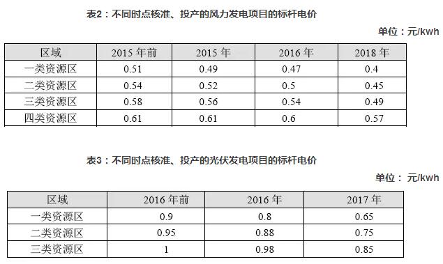 2、新、舊項(xiàng)目“雙軌制”,即不同時(shí)點(diǎn)前后投產(chǎn)的機(jī)組執(zhí)行差異化電價(jià)。自2009年以來(lái),發(fā)改委連續(xù)三次下調(diào)風(fēng)電標(biāo)桿電價(jià)、兩次下調(diào)光伏發(fā)電標(biāo)桿電價(jià)[1],下調(diào)電價(jià)僅限于關(guān)鍵時(shí)點(diǎn)后核準(zhǔn)并投產(chǎn)的風(fēng)電、光伏發(fā)電機(jī)組項(xiàng)目,存量風(fēng)電、光伏發(fā)電項(xiàng)目仍執(zhí)行原上網(wǎng)電價(jià)。