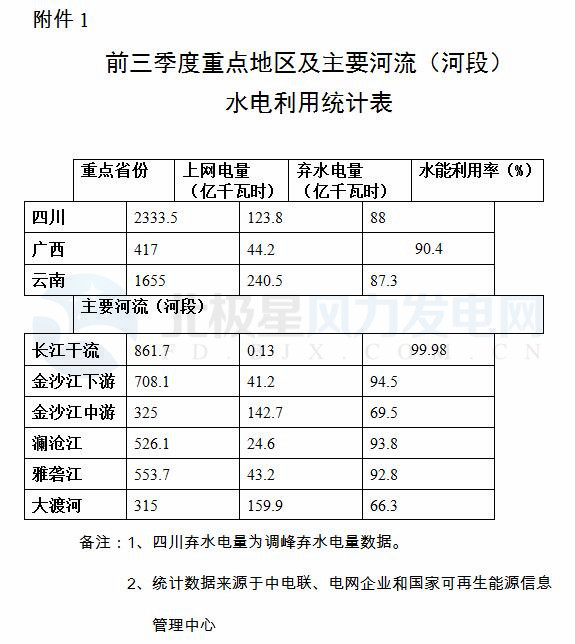 附件:1.前三季度重點(diǎn)地區(qū)及主要河流(河段)水電利用統(tǒng)計(jì)表