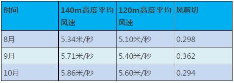 為對(duì)比120米高度和140米高度的運(yùn)行情況,剔除運(yùn)維檢修參觀等停機(jī)時(shí)間段,保留120米和140米共同發(fā)電的時(shí)間,從8-10月的統(tǒng)計(jì)數(shù)據(jù)來看,140米風(fēng)機(jī)發(fā)電量比120米發(fā)電量分別高19.08%、18.24%、13.27%。