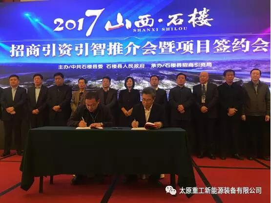 11月中旬,由中共石樓縣委、縣政府主辦的“2017山西˙石樓——招商引資引智推介會暨項(xiàng)目簽約會”在太原市迎澤賓館舉行。石樓縣、呂梁市直相關(guān)單位負(fù)責(zé)人和來自省內(nèi)外50多家企業(yè)代表匯聚一堂,為石樓縣的招商引資及經(jīng)濟(jì)發(fā)展建言獻(xiàn)策。太原重工新能源裝備有限公司副經(jīng)理張建功出席此次推介會,并代表公司與石樓縣政府簽訂了148MW風(fēng)力發(fā)電項(xiàng)目合作開發(fā)框架協(xié)議。