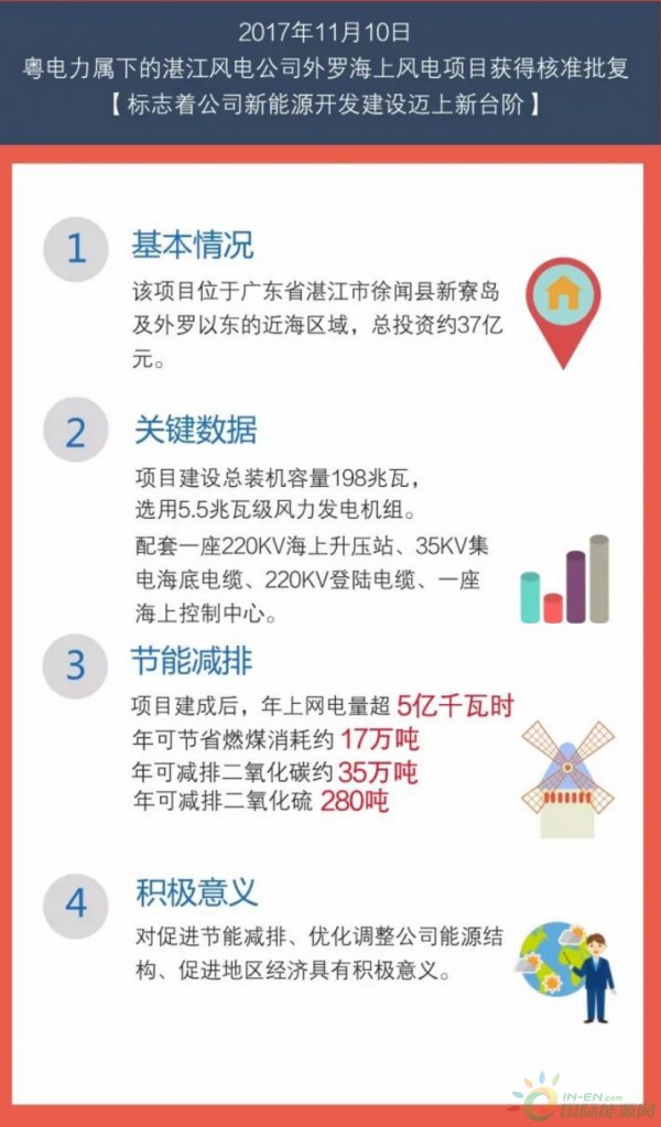 2017年11月10日,粵電力樹(shù)下的湛江風(fēng)電公司外羅海上風(fēng)電項(xiàng)目獲得核準(zhǔn),具體如下: