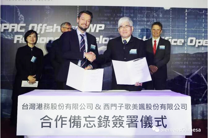 Siemens Gamesa Renewable Energy與臺(tái)灣港務(wù)公司簽署合作備忘錄(MoU),開始合作調(diào)查臺(tái)中港地區(qū)的海上風(fēng)力發(fā)電開發(fā)事業(yè)。