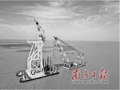 12月的伶仃洋上寒風(fēng)凜冽,珠海桂山旁的海上風(fēng)電場項(xiàng)目卻仍在有條不紊地施工。轟鳴的機(jī)器作業(yè)聲中,整個(gè)項(xiàng)目進(jìn)入到最后6臺風(fēng)機(jī)基礎(chǔ)導(dǎo)管架的安裝環(huán)節(jié)。