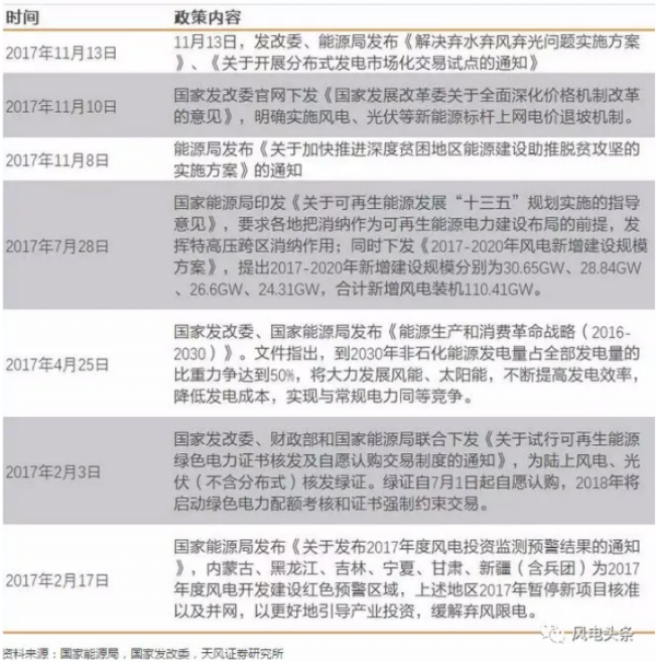 2017年部分風(fēng)電政策一覽表