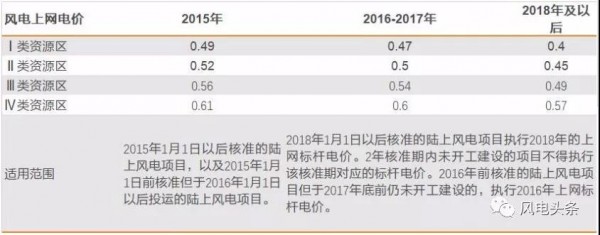 風(fēng)電上網(wǎng)電價變動表