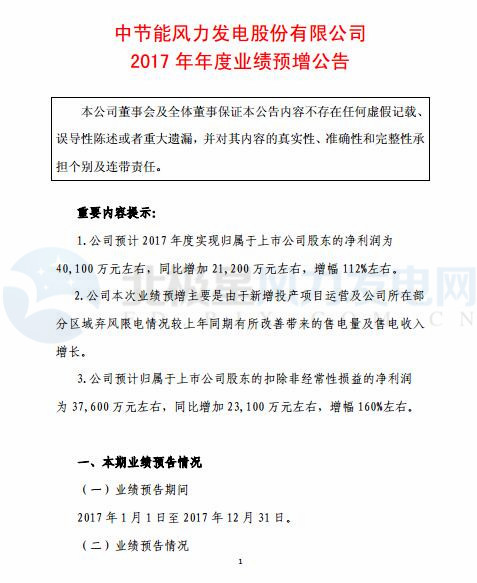 增幅112%!節(jié)能風(fēng)電預(yù)計(jì)2017年度實(shí)現(xiàn)凈利潤4.01億元