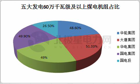 五大發(fā)電集團(tuán)60萬千瓦級(jí)及以上煤電機(jī)組占比達(dá)40.77%。其中,華能集團(tuán)占比48.6%;大唐集團(tuán)占比51.33%;華電集團(tuán)占比49%;國電集團(tuán)占比49.9%;國家電投集團(tuán)占比26.5%。(表8)