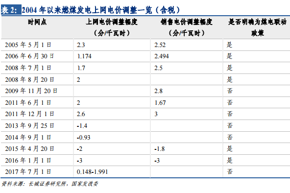 4.2 從2004年以來的燃煤發(fā)電上網(wǎng)電價(jià)調(diào)整情況: