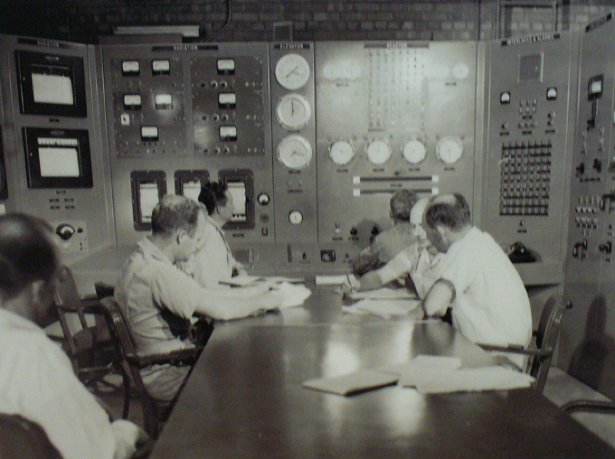 反應堆運行時控制室當中,緊盯著儀表的研究人員來源:[3]