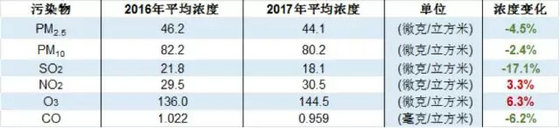 全國365座城市2017年各項污染物濃度與2016年同期比較
