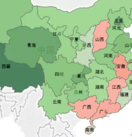 (綠色區(qū)域為同比改善省份,綠色越深整體改善越明顯,其余為同比反彈省份)