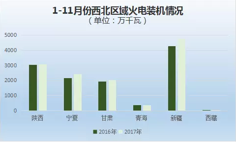 基于自身的資源優(yōu)勢(shì),西北區(qū)域也是我國(guó)火電裝機(jī)較為集中的區(qū)域。2017年1-11月份新疆、陜西、寧夏、甘肅、青海、西藏火電裝機(jī)容量分別為4763萬千瓦、3064萬千瓦、2432萬千瓦、2024萬千瓦、378萬千瓦、39萬千瓦,其中新疆較上年同期增長(zhǎng)了11.7%,其他省份增幅較小。