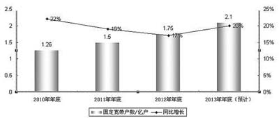 2010~2013年我國(guó)固定寬帶接入用戶數(shù)統(tǒng)計(jì)