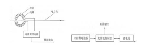 圖1感應(yīng)供電電源結(jié)構(gòu)圖 圖2太陽能供電電源結(jié)構(gòu)圖