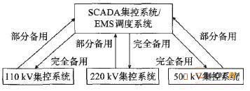 由于地震、火災(zāi)等災(zāi)難性事件發(fā)生的概率很小,建設(shè)專用的電網(wǎng)調(diào)度自動(dòng)化災(zāi)備系統(tǒng)的投入較大,可利用省、地、縣建設(shè)無人(少人)值班變電所集控中心與備用系統(tǒng)的機(jī)會(huì),將本地集控系統(tǒng)與其他地區(qū)電網(wǎng)調(diào)度自動(dòng)化系統(tǒng)建設(shè)成互備系統(tǒng),無需大量增加投入就能增強(qiáng)電網(wǎng)調(diào)度自動(dòng)化系統(tǒng)備用效果。這種異地互備方式無須另建專門的備用系統(tǒng),可節(jié)約投資,但對下級調(diào)度中心的系統(tǒng)有較高的要求,包括系統(tǒng)的建模范圍、數(shù)據(jù)規(guī)模、通信條件等。