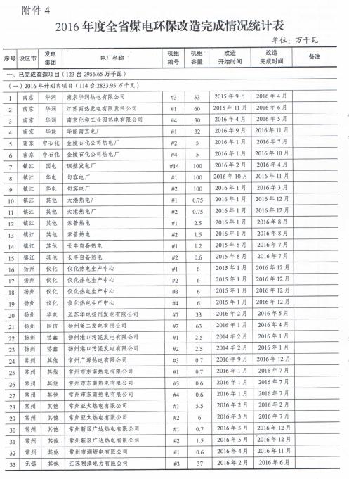 關于2016年度全省煤電節(jié)能減排升級與改造工作實施情況通報 蘇發(fā)改能源發(fā)〔2017〕187號