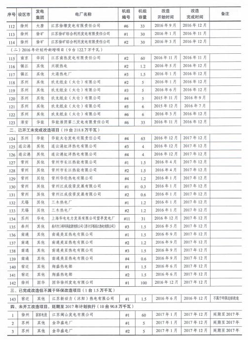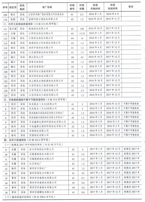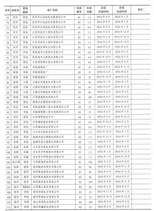 江蘇2016年全省煤電節(jié)能減排升級與改造工作實施情況:共110臺機組2750.1萬千瓦