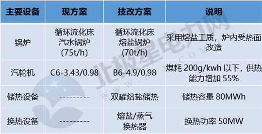 根據(jù)以上技改需求,按照儲熱式背壓機(jī)組設(shè)備配置方案,得到如下技改方案主設(shè)備技術(shù)參數(shù):