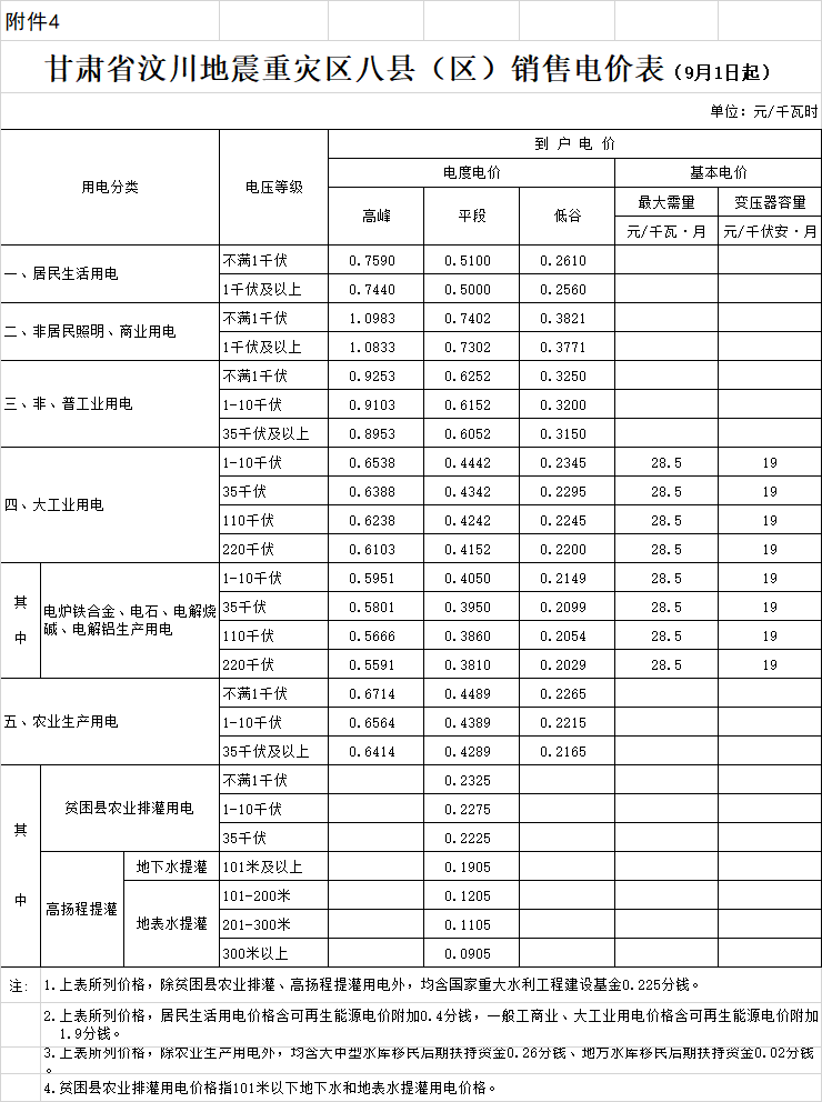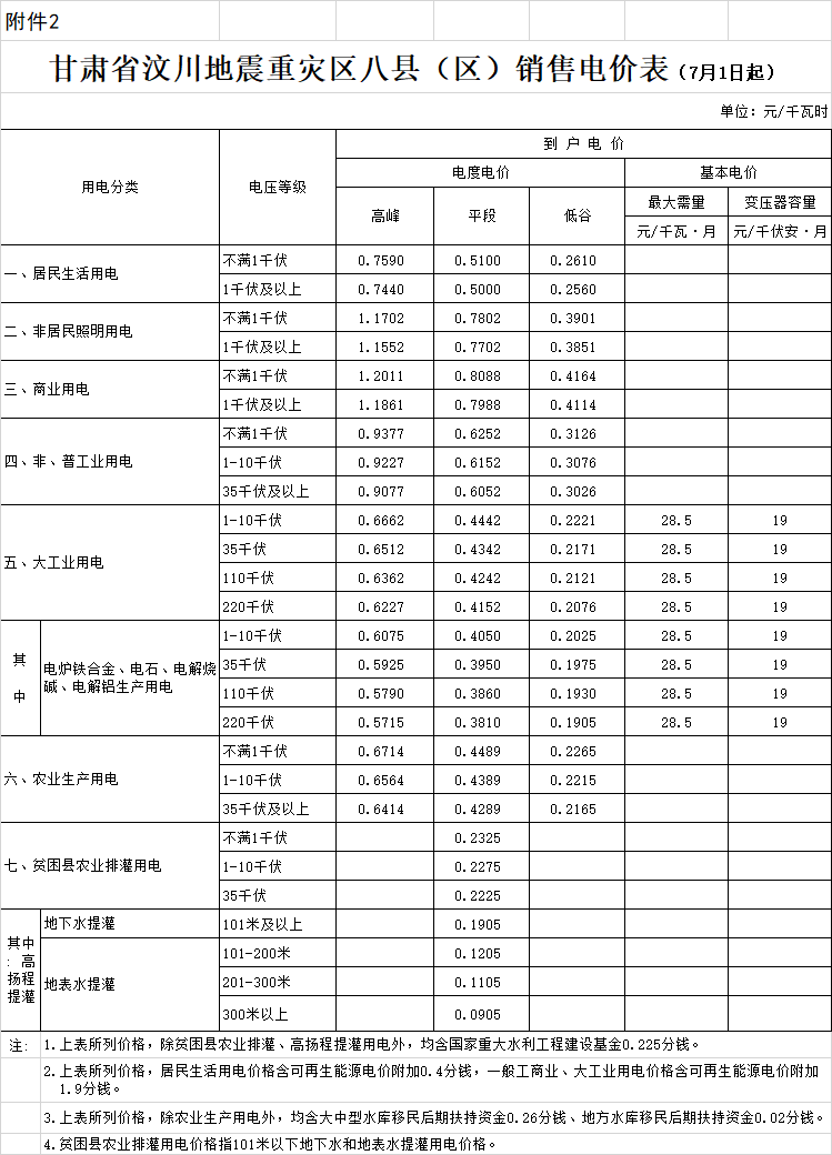甘肅省發(fā)改委日前發(fā)布了《關(guān)于降低一般工商業(yè)電價有關(guān)事項(xiàng)的通知》,自7月1日起,國家重大水利工程建設(shè)基金降低25%,由每千瓦時0 30分錢調(diào)整