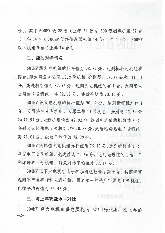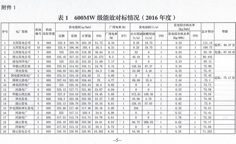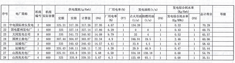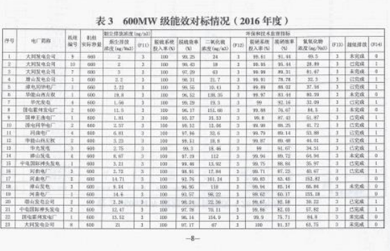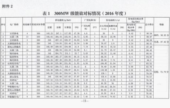 山西省發(fā)布2016年度火電企業(yè)能效水平的通報