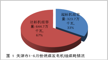天津市共調(diào)研24臺(tái)機(jī)組,裝機(jī)容量968.4萬(wàn)千瓦,其中低于310克/千瓦時(shí)裝機(jī)容量644.7萬(wàn)千瓦,占總?cè)萘康?7%,高于310克/千瓦時(shí)裝機(jī)容量323.7萬(wàn)千瓦,占總?cè)萘康?3%(圖1)。1-6月份煤電機(jī)組平均煤耗約為298.34克/千瓦時(shí)。(Σ(單機(jī)組上網(wǎng)電量×單機(jī)組供電煤耗)/Σ(單機(jī)組上網(wǎng)電量)=機(jī)組平均煤耗)