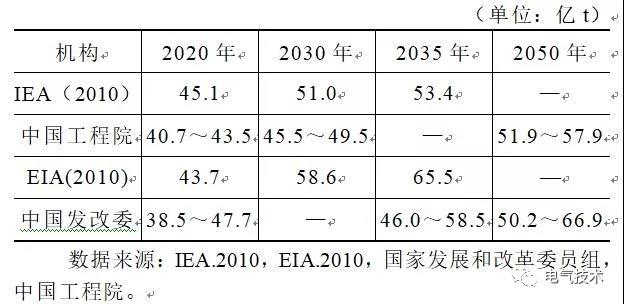 表2 國內(nèi)外機(jī)構(gòu)對(duì)中國未來能源的需求預(yù)測(cè)
