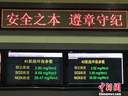 華電新疆公司烏魯木齊熱電廠超凈改造后兩臺(tái)機(jī)組排放煙氣中污染物實(shí)時(shí)排放含量。迪娜 攝